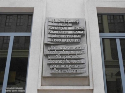 Меморіальна дошка на будинку №13 по вул. Барикадній, де мешкав Леві Іцхак Шнеєрсон